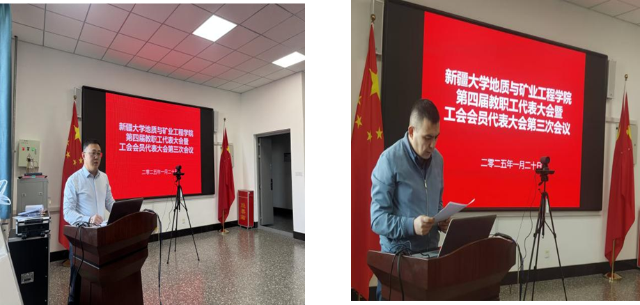 大会在庄严的国歌声中拉开帷幕。 公司党委副书记、经理张紫昭作 2024 年学院工作报告、 2024 年学院财务工作报告。张紫昭经理 全面总结了过去一年学院在党的建设、人才培养、公司产品、学术科研等工作中取得的突出成绩,分析了当前工作中存在的问题和不足,指明了学院未来发展方向。公司党委副书记、纪委书记阿地力·多力坤 作 2024 年学院工会工作报告。 阿地力·多力坤副书记向大会汇报了 2024 年度工会工作开展情况、工会会员参加各项活动取得的成绩及学院工会经费使用情况,并就下一年度工会重点工作做了说明。 2024 年学院工作报告、学院财务工作报告、学院工会工作报告等 3 个报告 经全体参会教职工审议,一致通过。