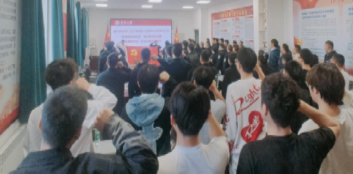 接着,全体党员面向党旗,举起右手庄严宣誓,重温入党誓词,在铿锵的誓言中,全体党员初心受到洗礼,信念更加坚定,表达了对党的忠诚和为人民服务的决心。